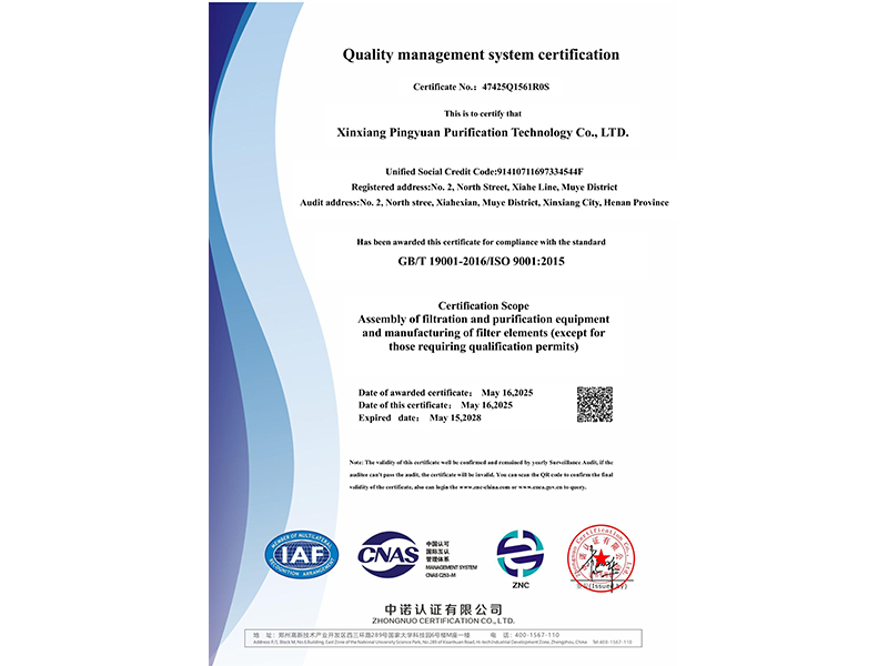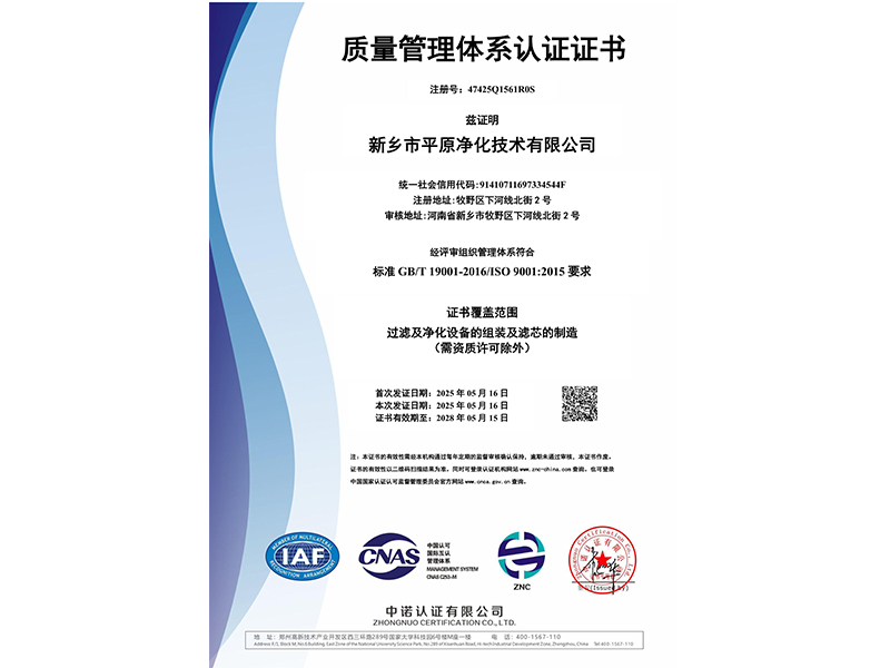 質(zhì)量管理體系認(rèn)證證書(shū)